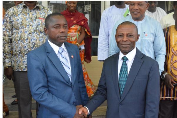 The Auditor-General for the Federation, Mr. Anthony Mkpe Ayine (Right) shaking hands with the Chairman of the Public Accounts, Expenditure and Audit Committee (PAC) of the Parliament of Liberia, Senator Henry Yallah (Left) on Friday 25th May, 2018 at the Audit House in Abuja.