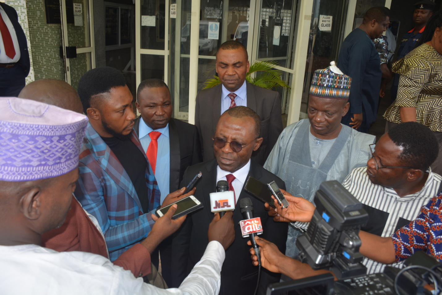 The Auditor-General for the Federation, Anthony Mkpe Ayine, answering questions from journalists at the end of the 48th Bi-Annual Conference of Federal and State Auditors-General, held on 23rd October, 2018, at the Audit House Abuja.