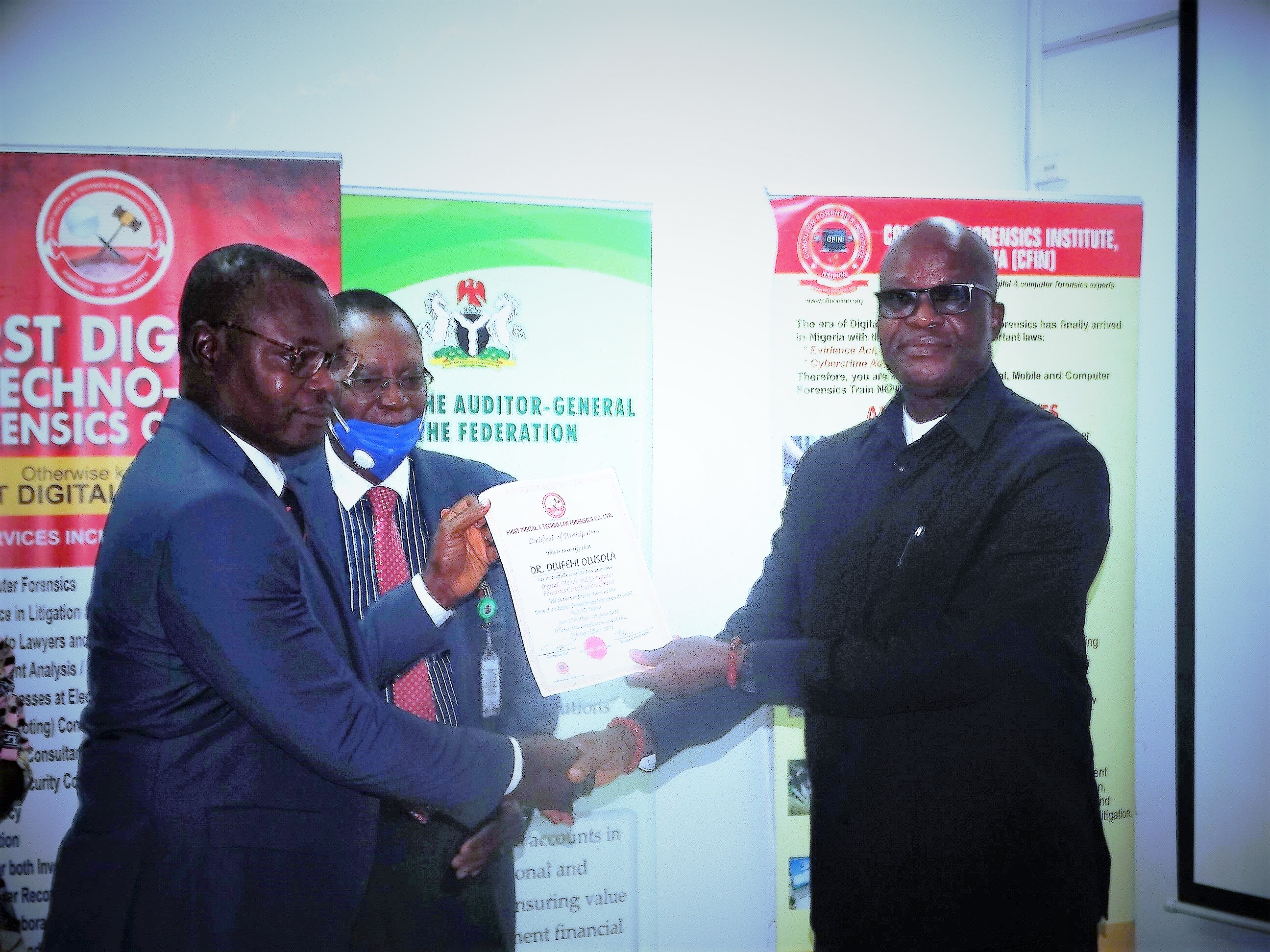 The AuGF presented certificates of participation to the 21 forensic Auditors trained in Forensic and Digital Forensics along with membership certificates of the Computer Forensics Institute of Nigeria (CFIN). He commended them for their passion and charged them to remain worthy Ambassadors of the OAuGF wherever they are assigned to work. He said, “additional Auditors will be trained once the result of this pioneering exercise is evaluated”.